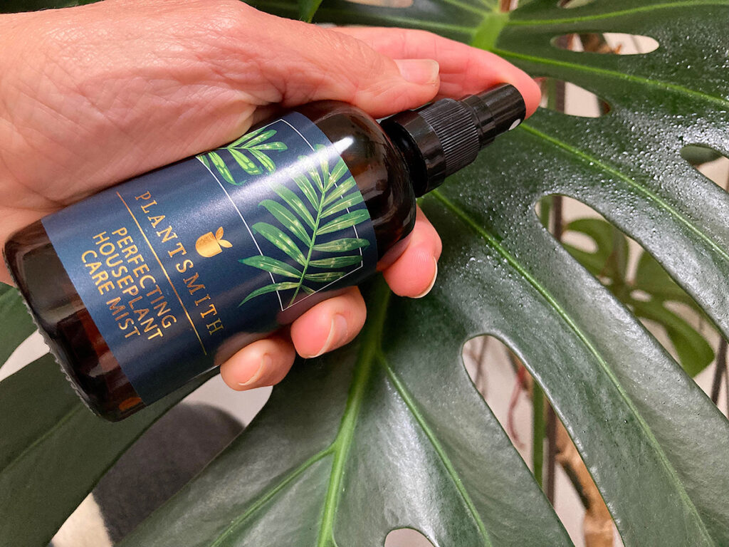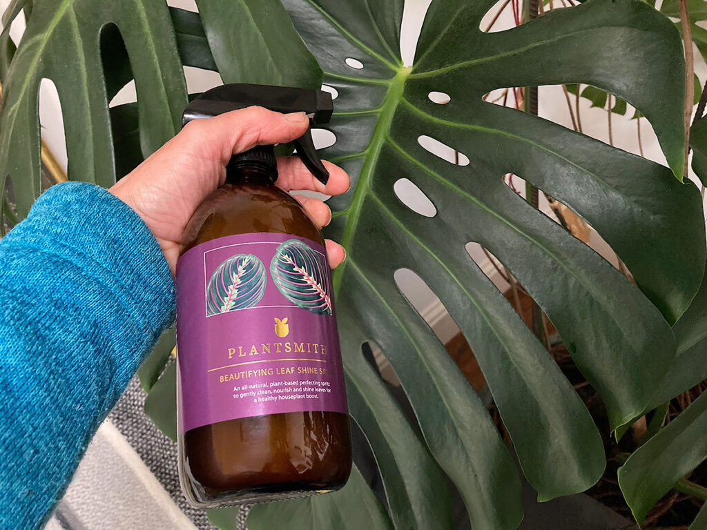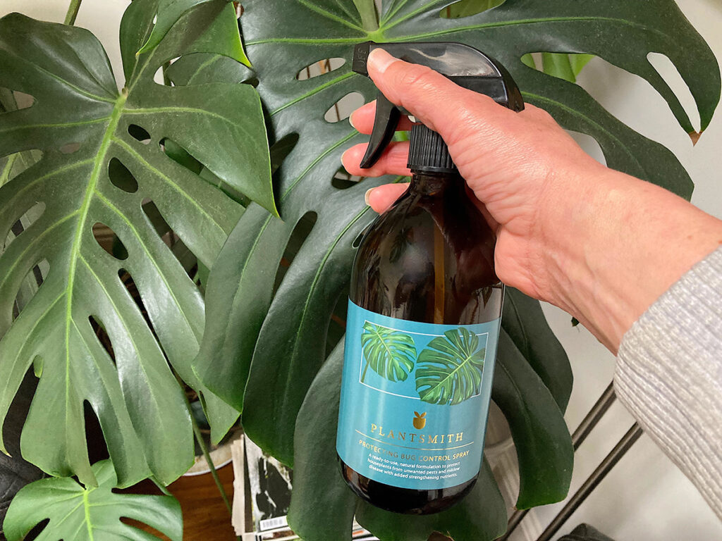 Monstera have very large leaves which collect household dust. It doesn’t take long for this dust to build up and if its not removed will clog pores and obstruct light getting through. Spray with Plantsmith Beautifying Leaf Shine Spray, and wipe with a cloth to clean leaves so the plant can easily photosynthesise. Who would have thought dusting could be so much fun?