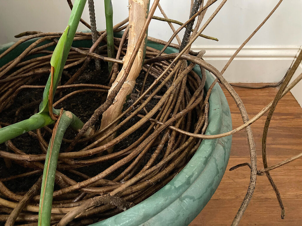 Starting life as epiphytes, Monstera use their aerial roots to get nutrients and moisture from rainwater and the surrounding air. As they grow some roots anchor in to the soil for extra support, making Monstera hemiepiphytes, with both aerial and soil bound roots.