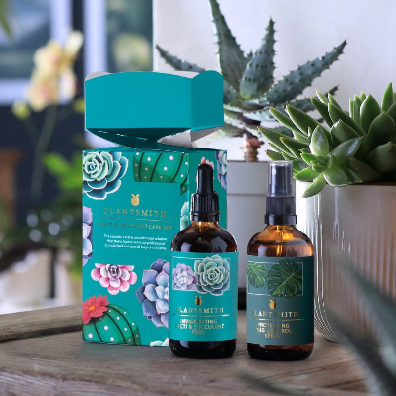Our Cacti & Succulent Care Set in a gift cracker contains 100ml of Invigorating Cacti & Succulent Feed and 100ml of Protecting Bug Control Spray – the perfect gift for any succulent lover.